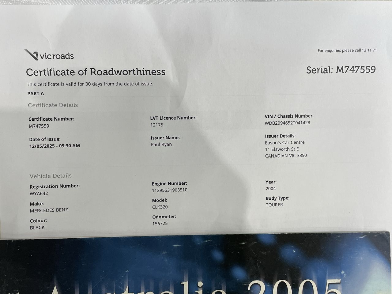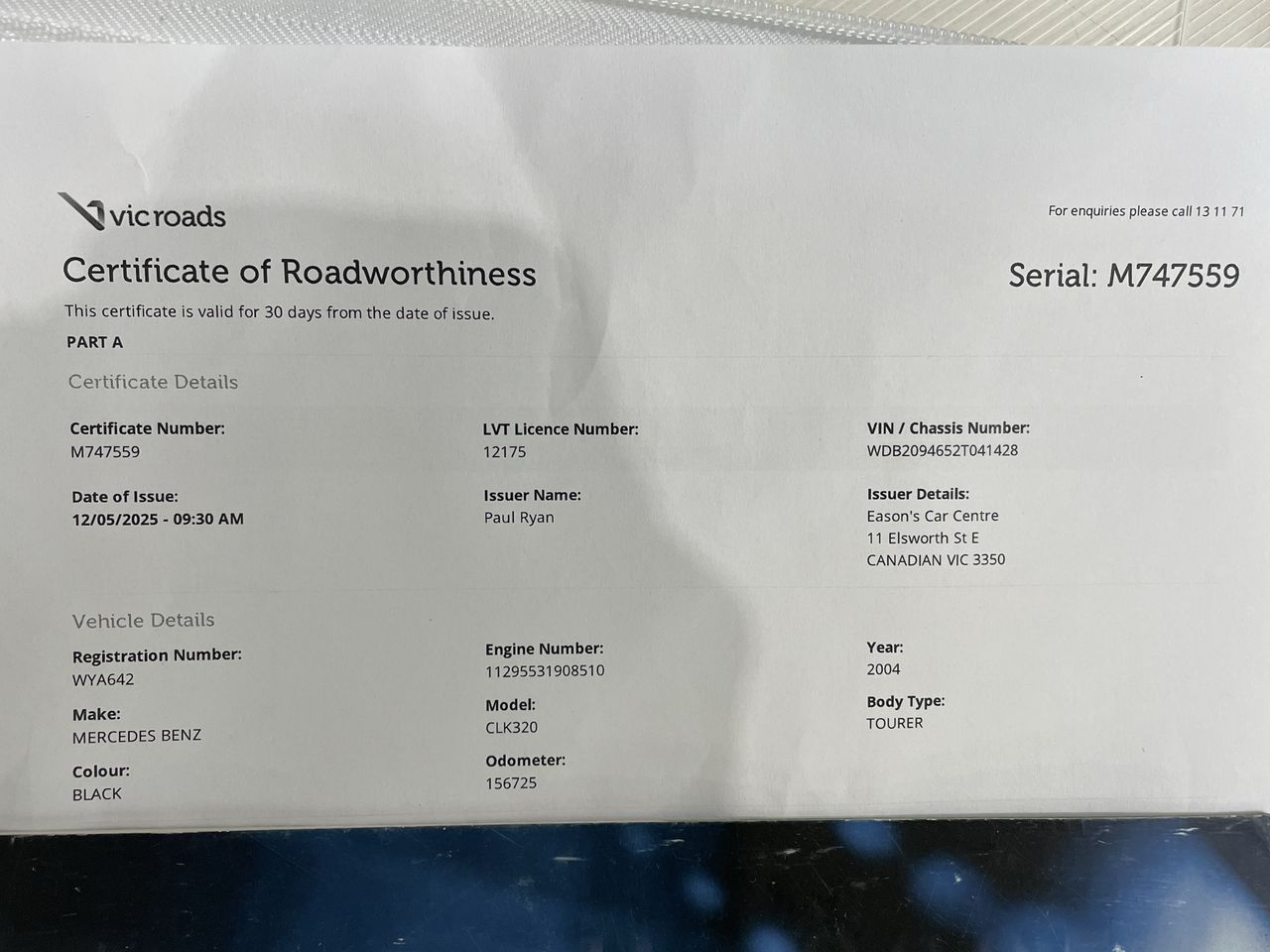 2004 Mercedes Benz CLK 320 Avantgarde A209 RWC Issued 12/05/2025