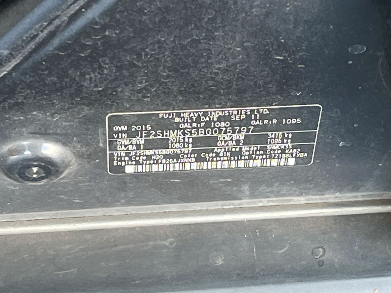 (SN:JF2SHMKS5BG075797) (134773-17)
