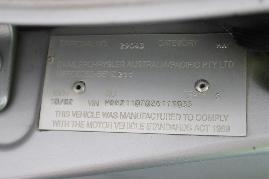 | Part of Sale | 2002 Mercedes Benz E500 Elegance W211 Automatic Sedan | ||||||||||||||