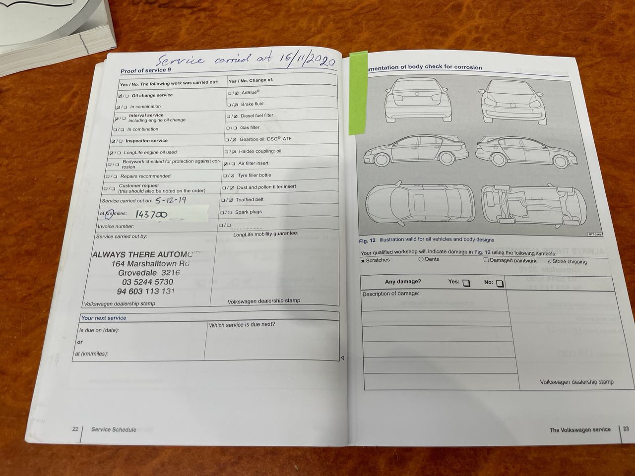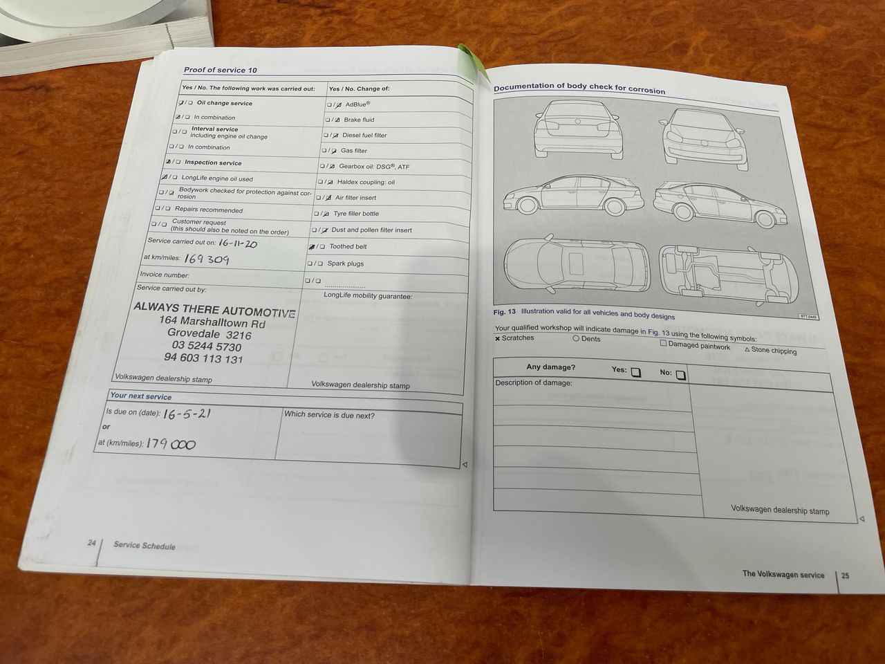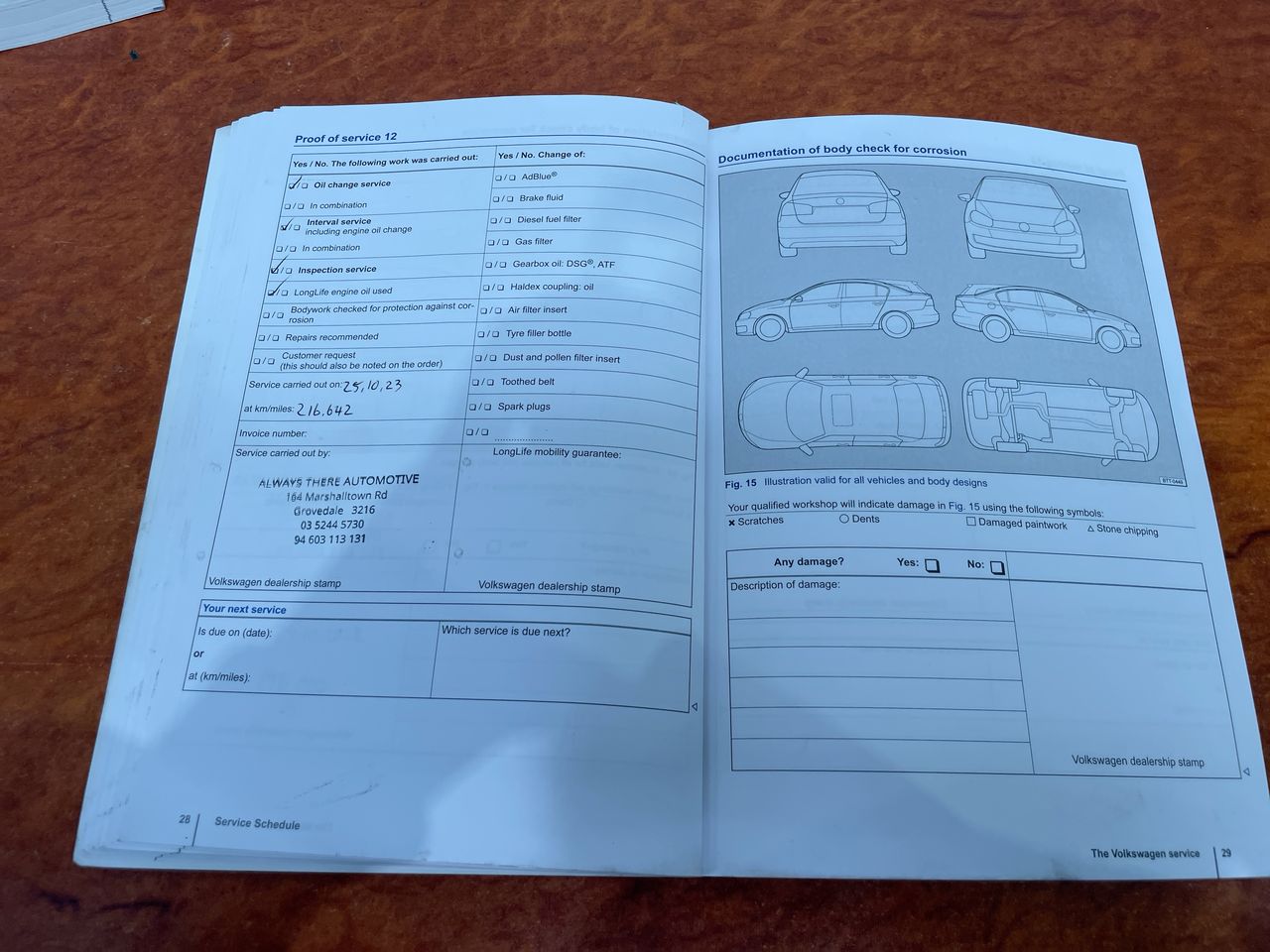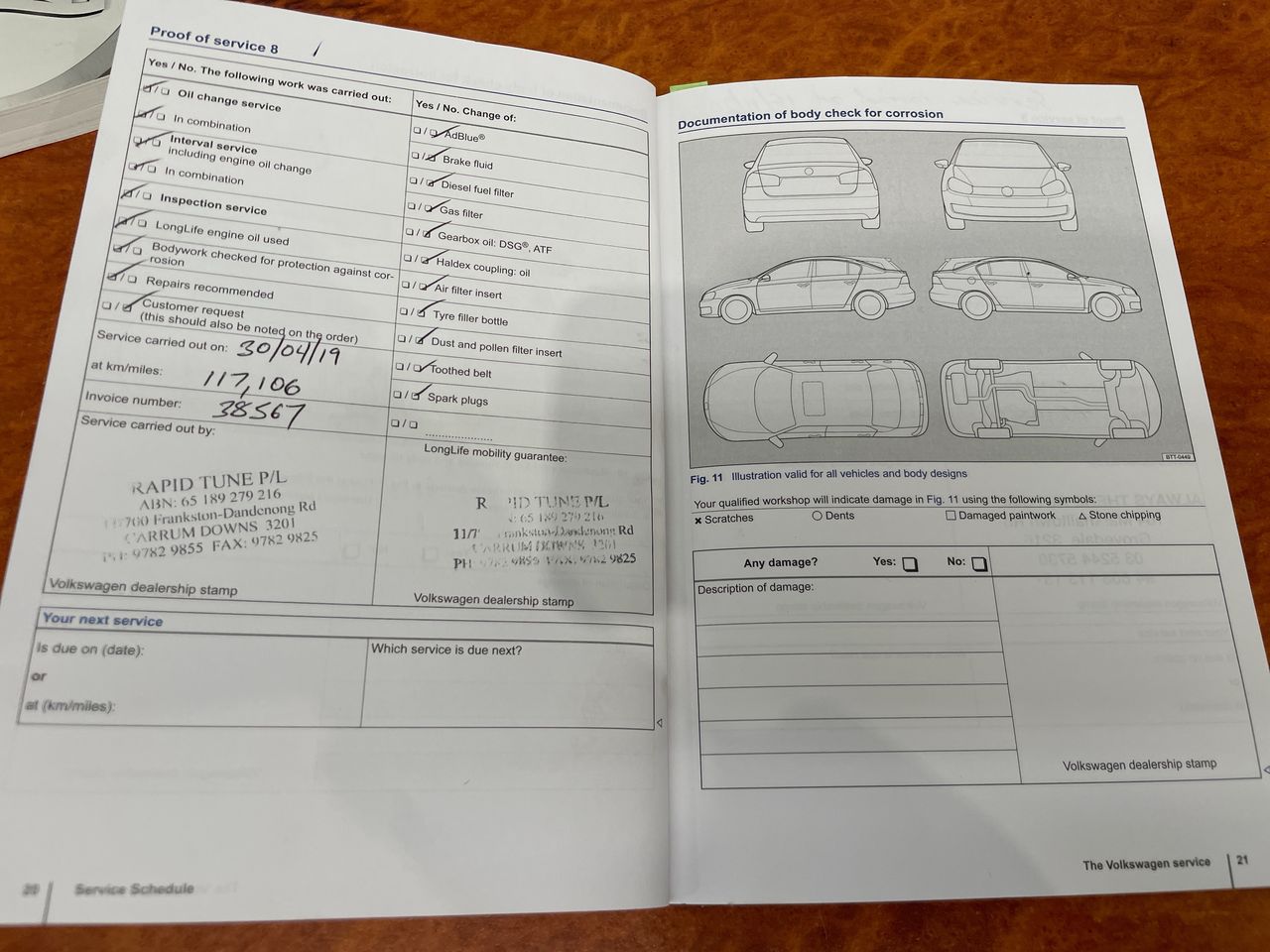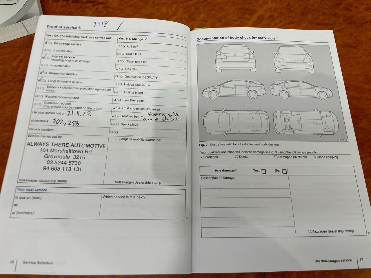 • Dents or marks on body consistent with age and kilometres.