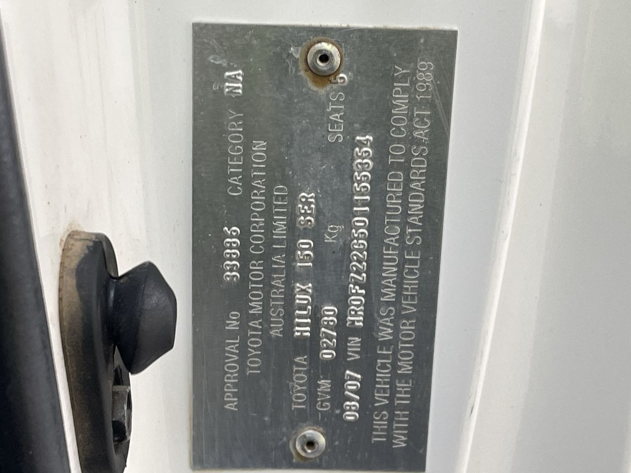 | Part of Sale | 2007 Toyota Hilux SR (4x4) KUN26R Turbo Diesel Automatic Dual Cab | ||||||||||||||