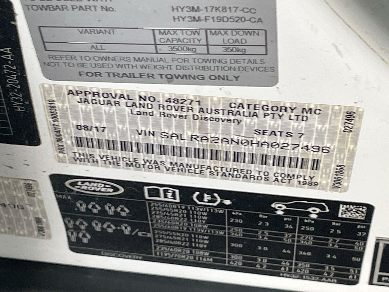 (SN:SALRA2AN0HA027496)