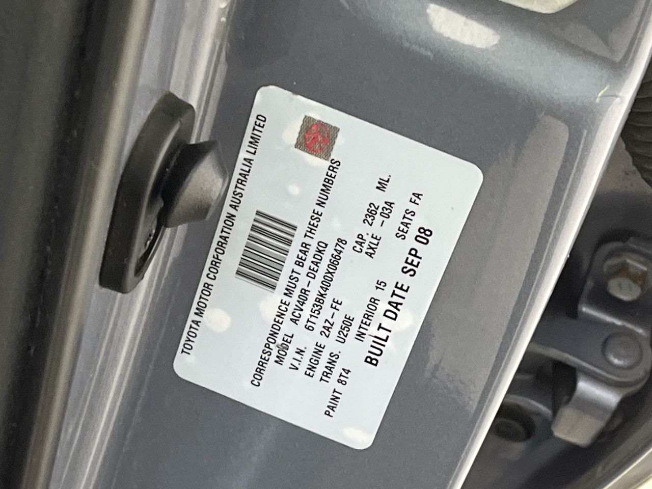 | Part of Sale | 2008 Toyota Camry Altise ACV40R Automatic Sedan | ||||||||||||||