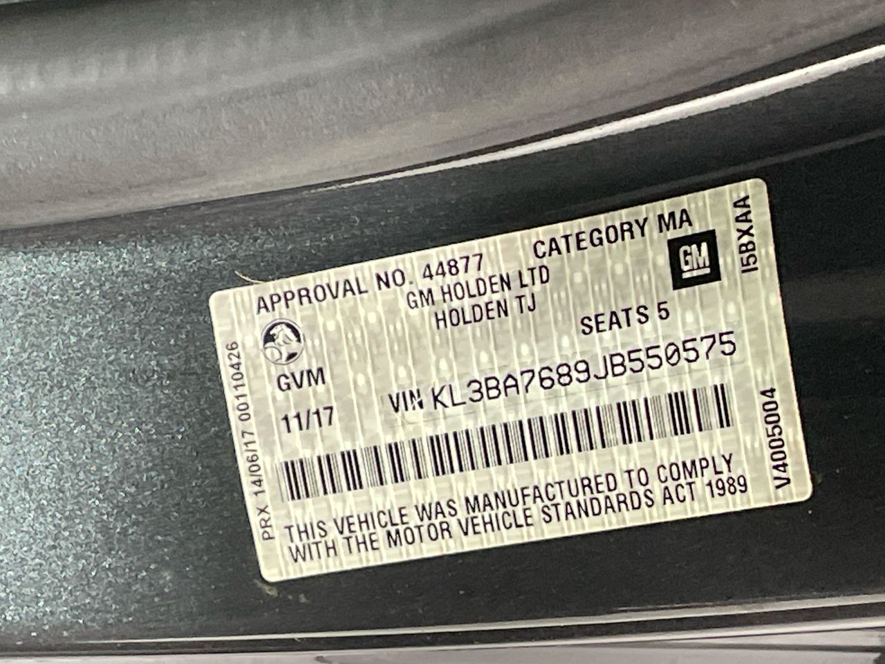 • VIN: KL3BA7689JB550575