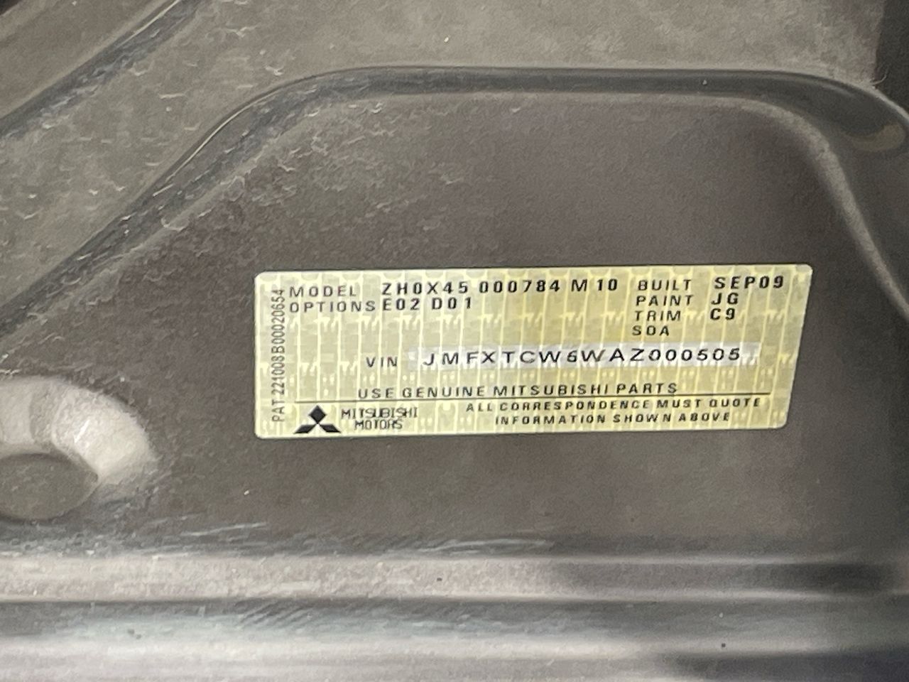 • VIN: JMFXTCW5WAZ000505