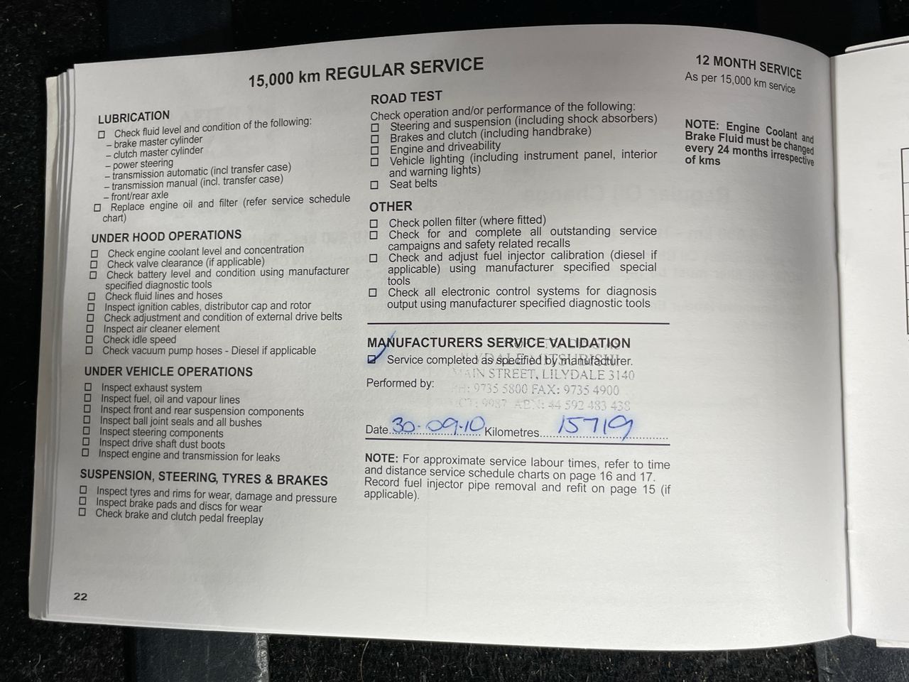• Dents or marks on body consistent with age and kilometres.