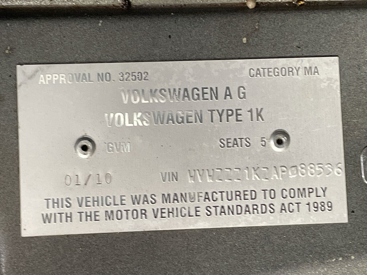 • VIN: WVWZZZ1KZAP088536