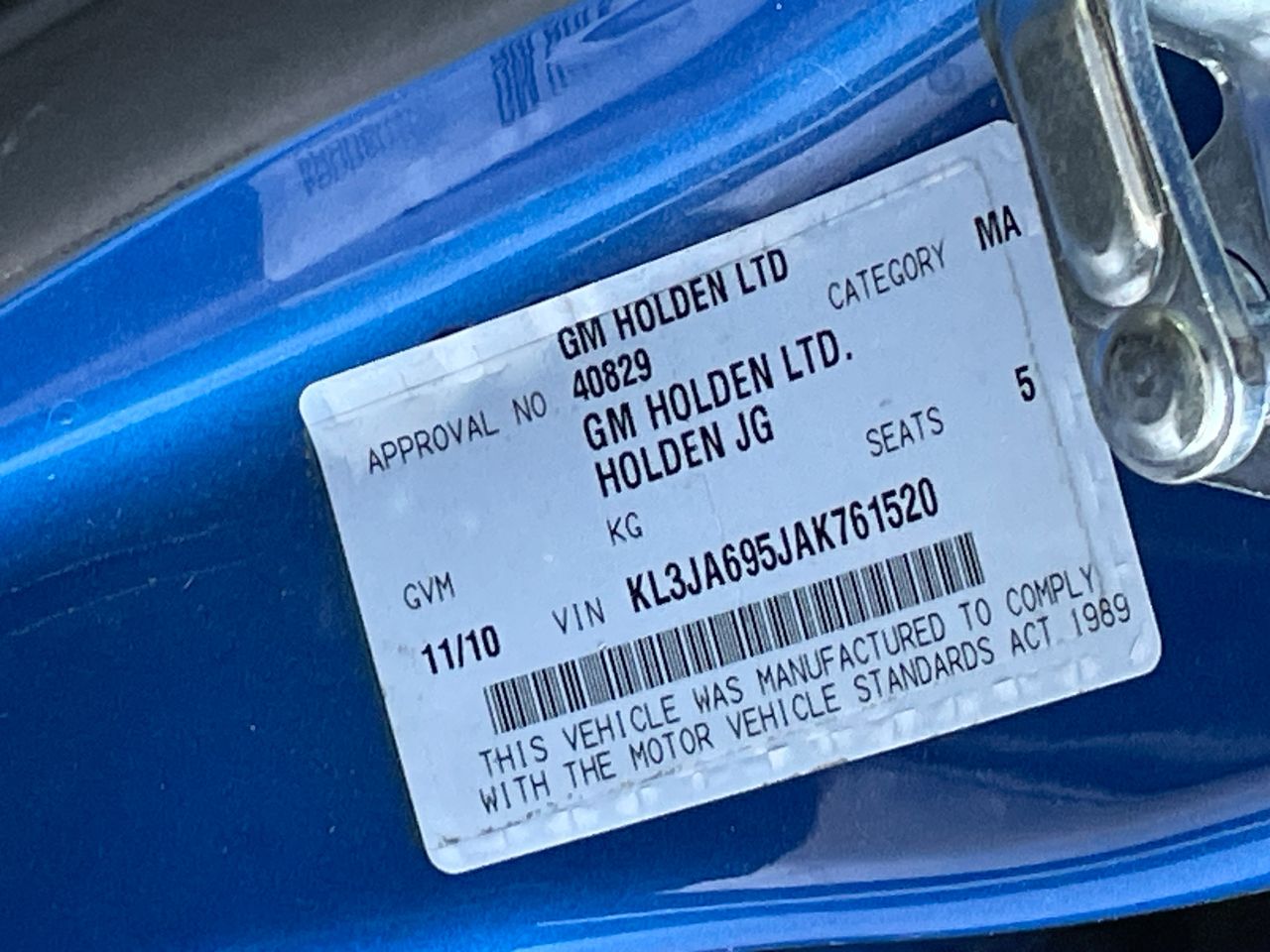 • VIN: KL3JA695JAK761520