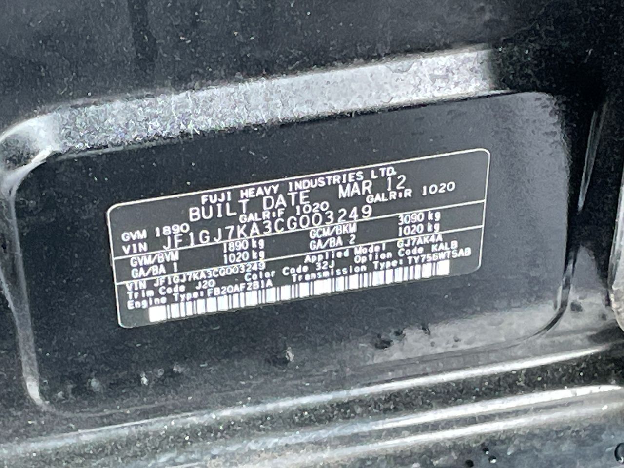 • VIN: JF1GJ7KA3CG003249