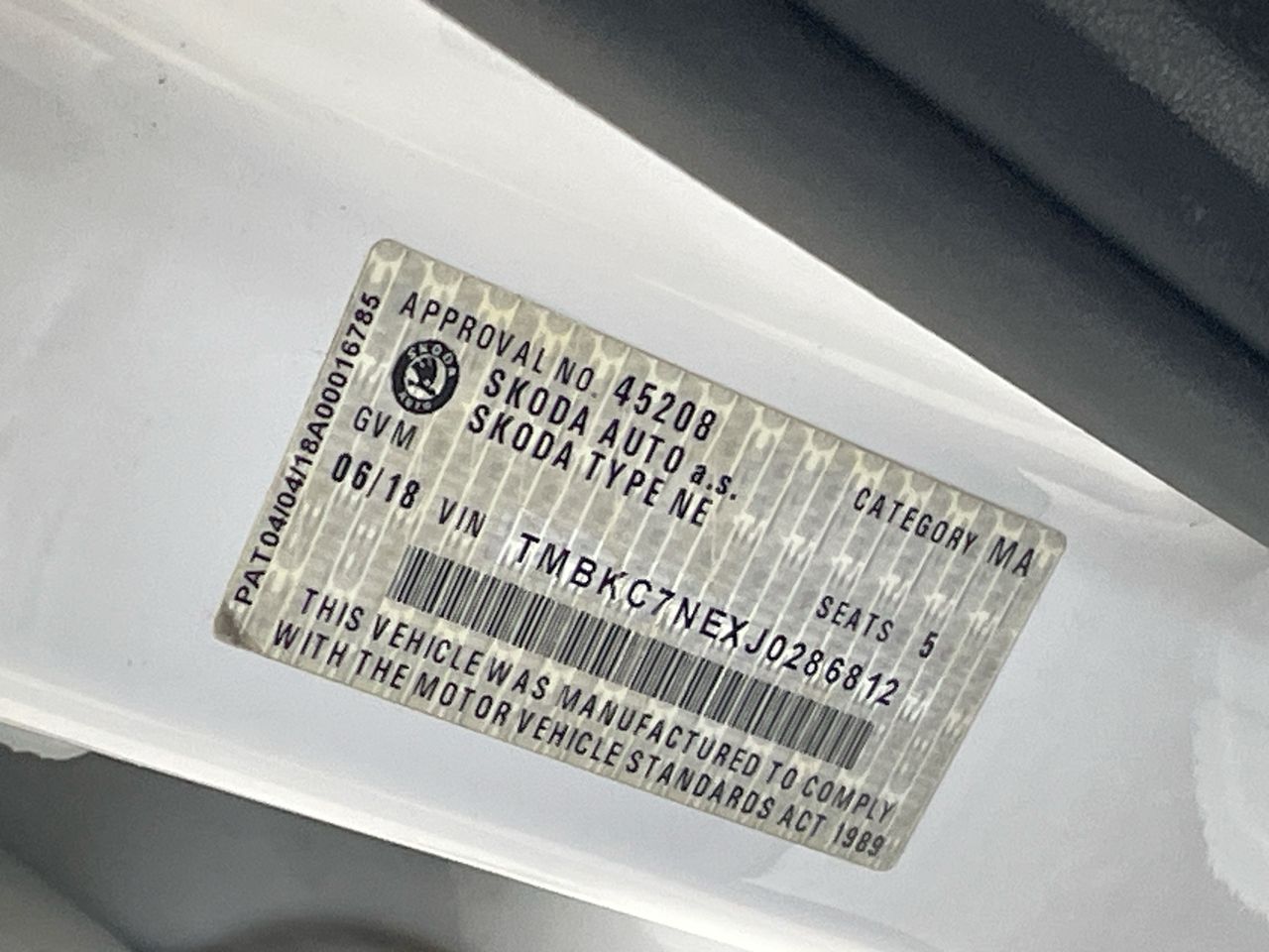 • VIN: TMBKC7NEXJ0286812