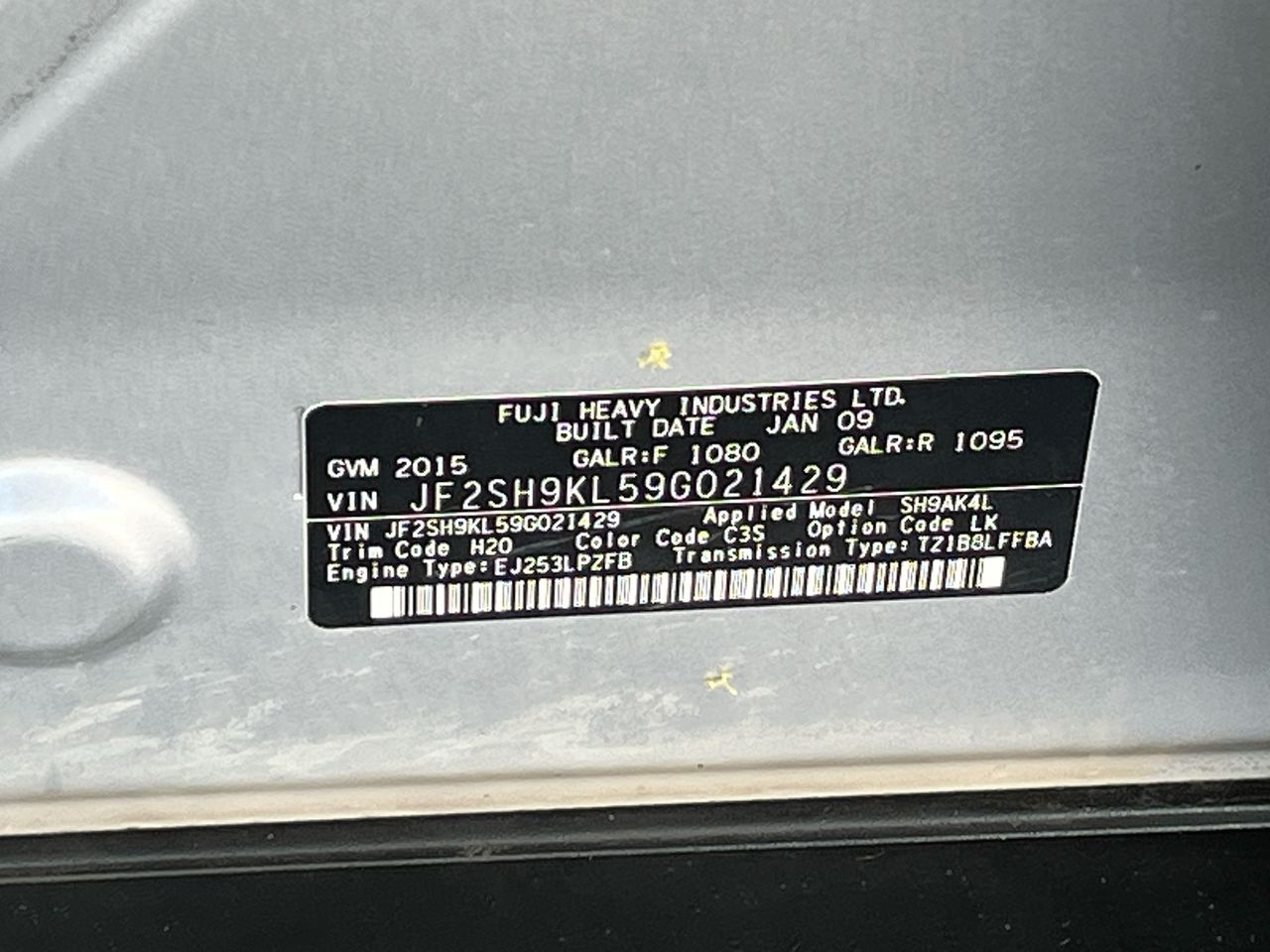 • VIN: JF2SH9KL59G021429
