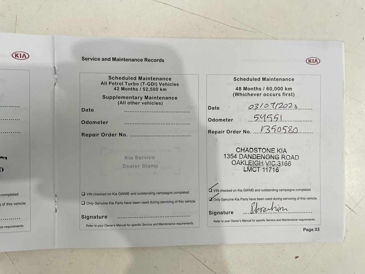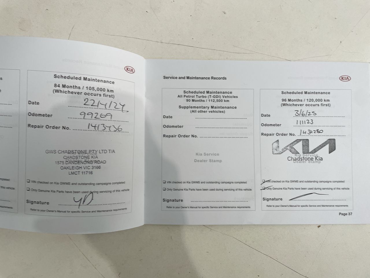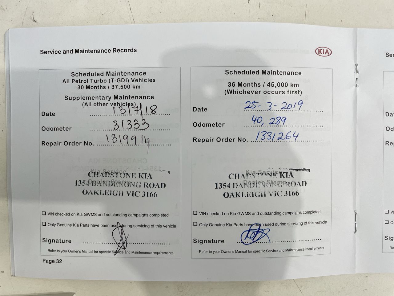• Dents or marks on body consistent with age and kilometres.