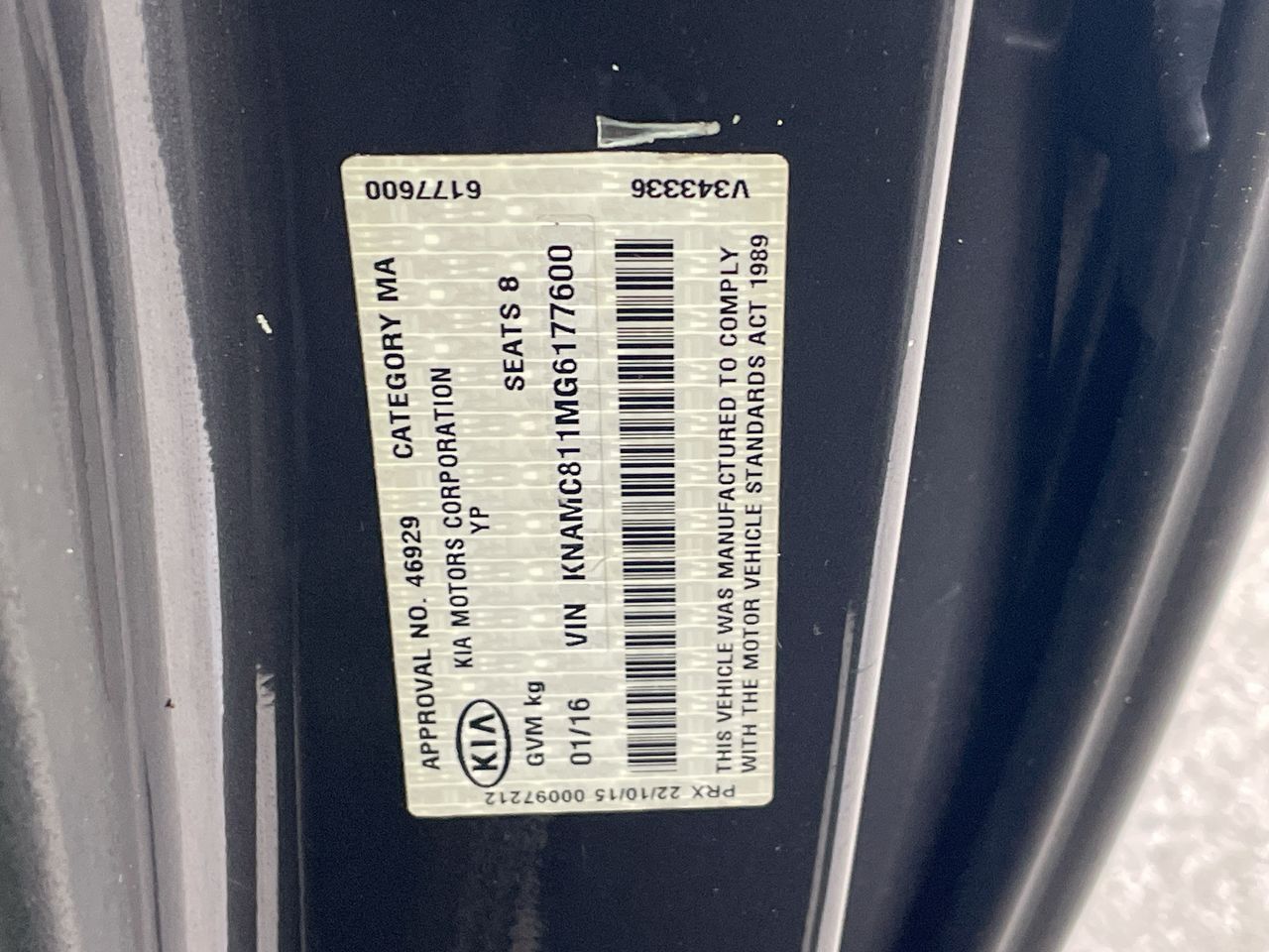 • VIN: KNAMC811MG6177600