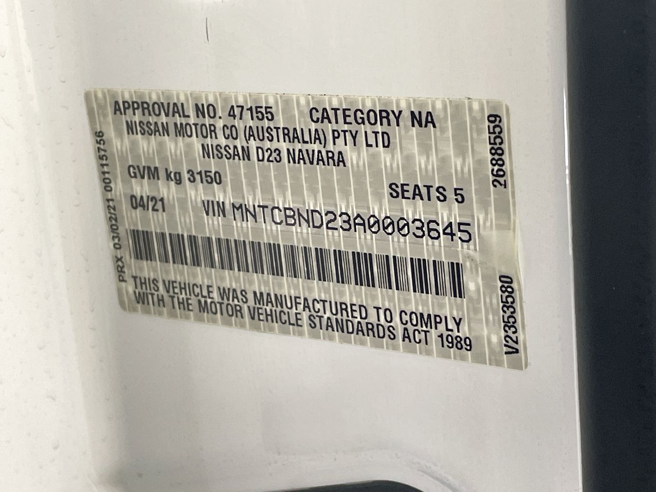 | Part of Sale | 2021 Nissan Navara 4X4 ST Series 4 T/D Automatic Dual Cab | ||||
