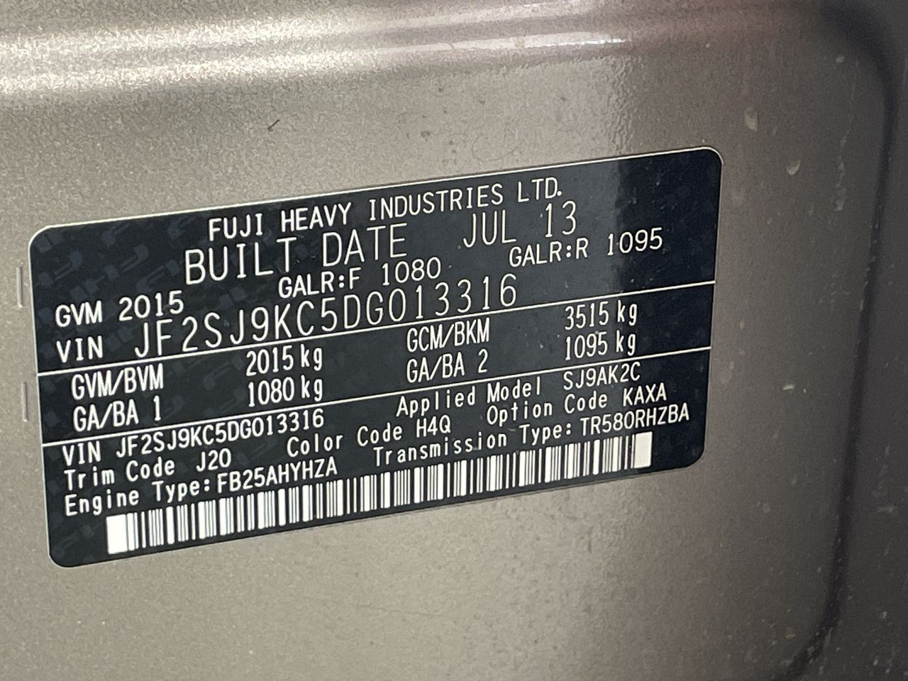 (SN:JF2SJ9KC5DG013316) (135787-31)