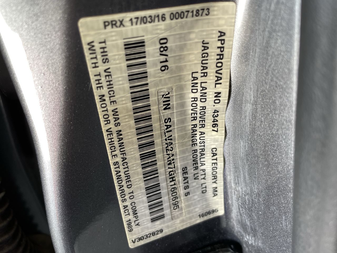 (SN:SALVA2AN7GH160695) (136295-1)