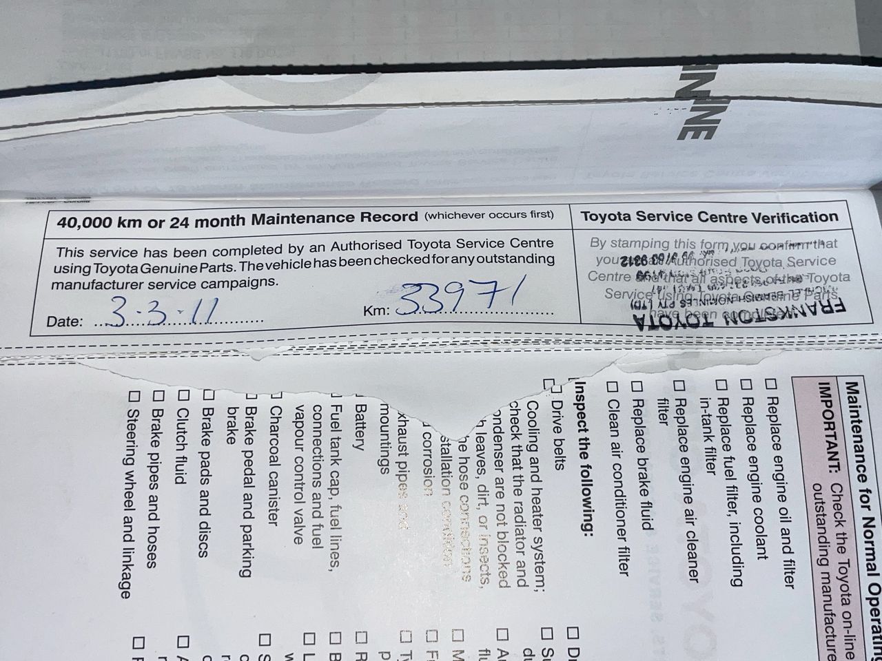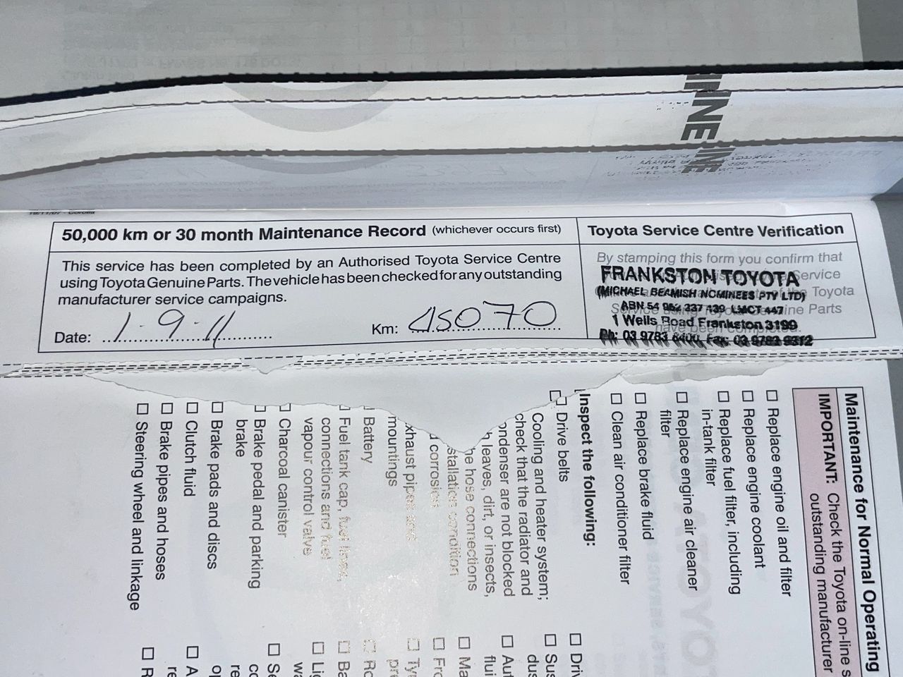 Is Inspection of the vehicle necessary?