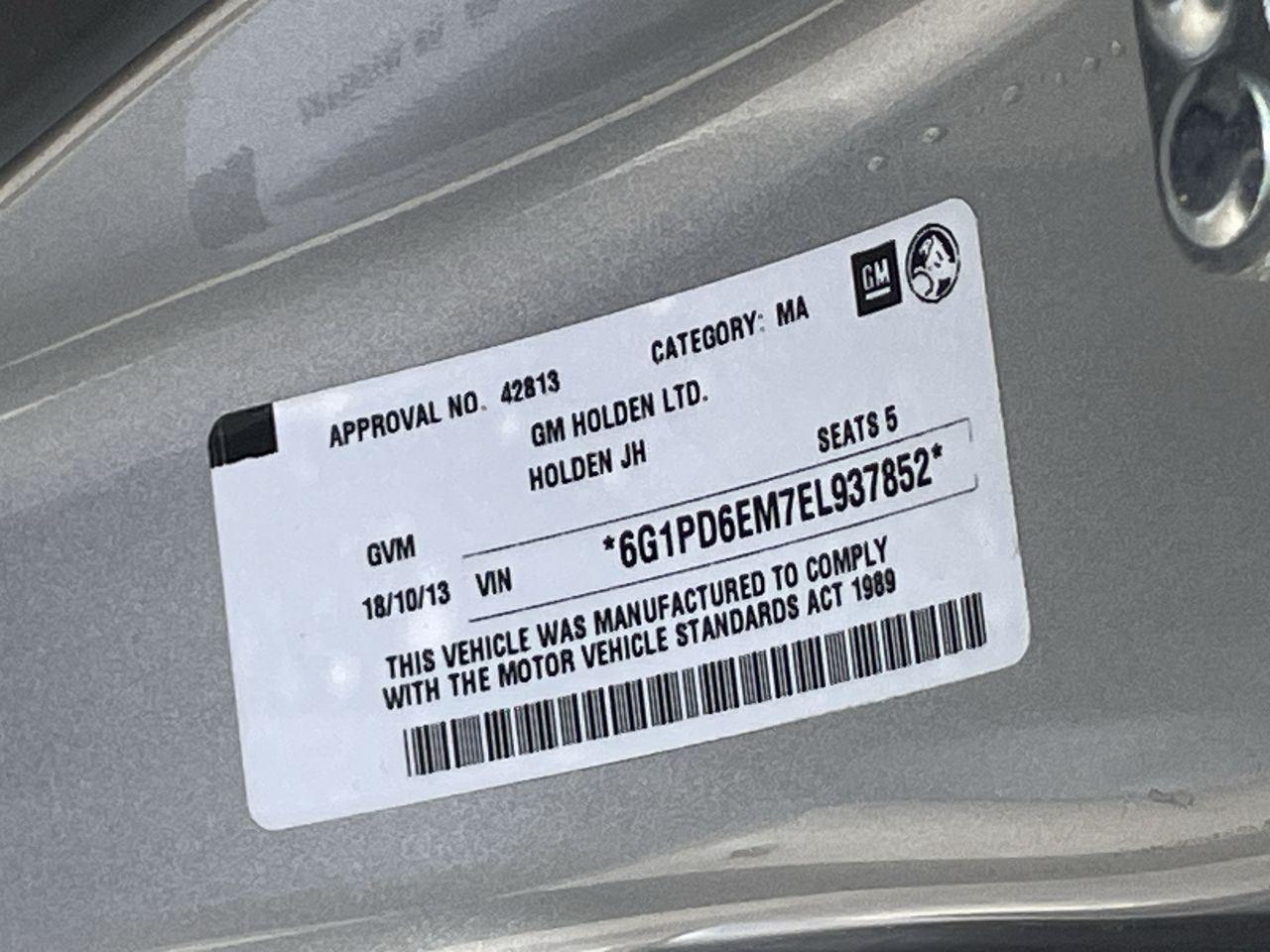 (SN:6G1PD6EM7EL937852) (124585-298)
