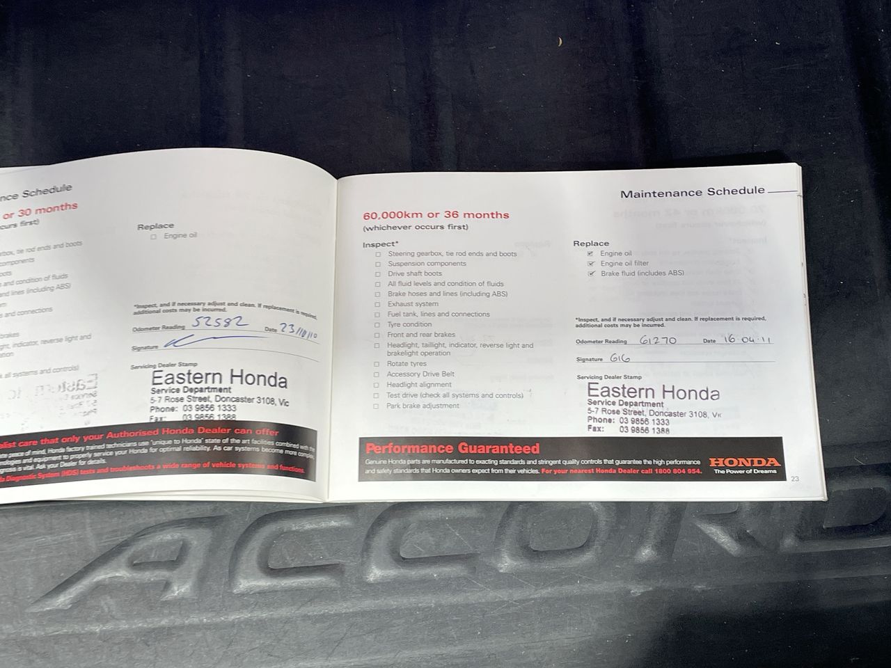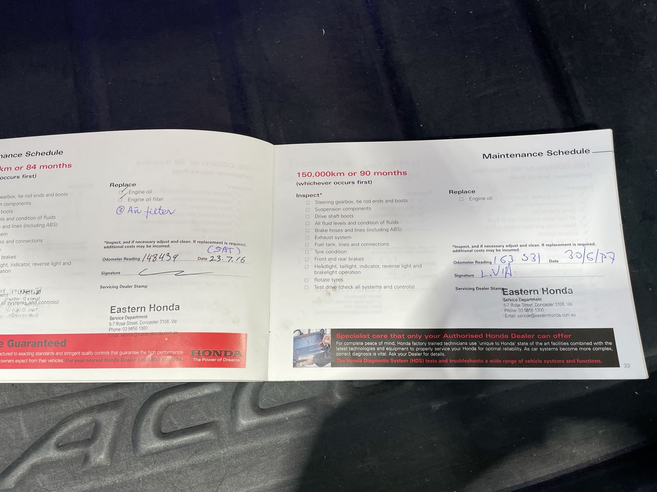 • Dents or marks on body consistent with age and kilometres.