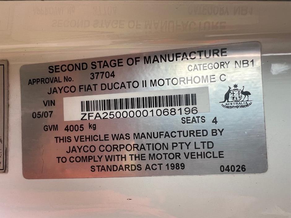 Part of Sale 2007 Fiat Jayco Ducato 2 Motorhome