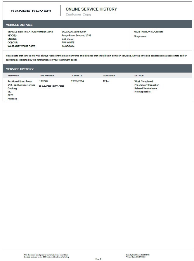 | Part of Sale | 2014 Land Rover Range Rover Evoque TD4 PURE TECH Turbo Diesel 9 auto Wagon | ||||||||||||||