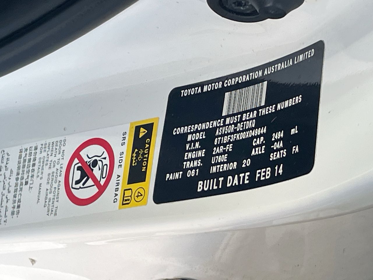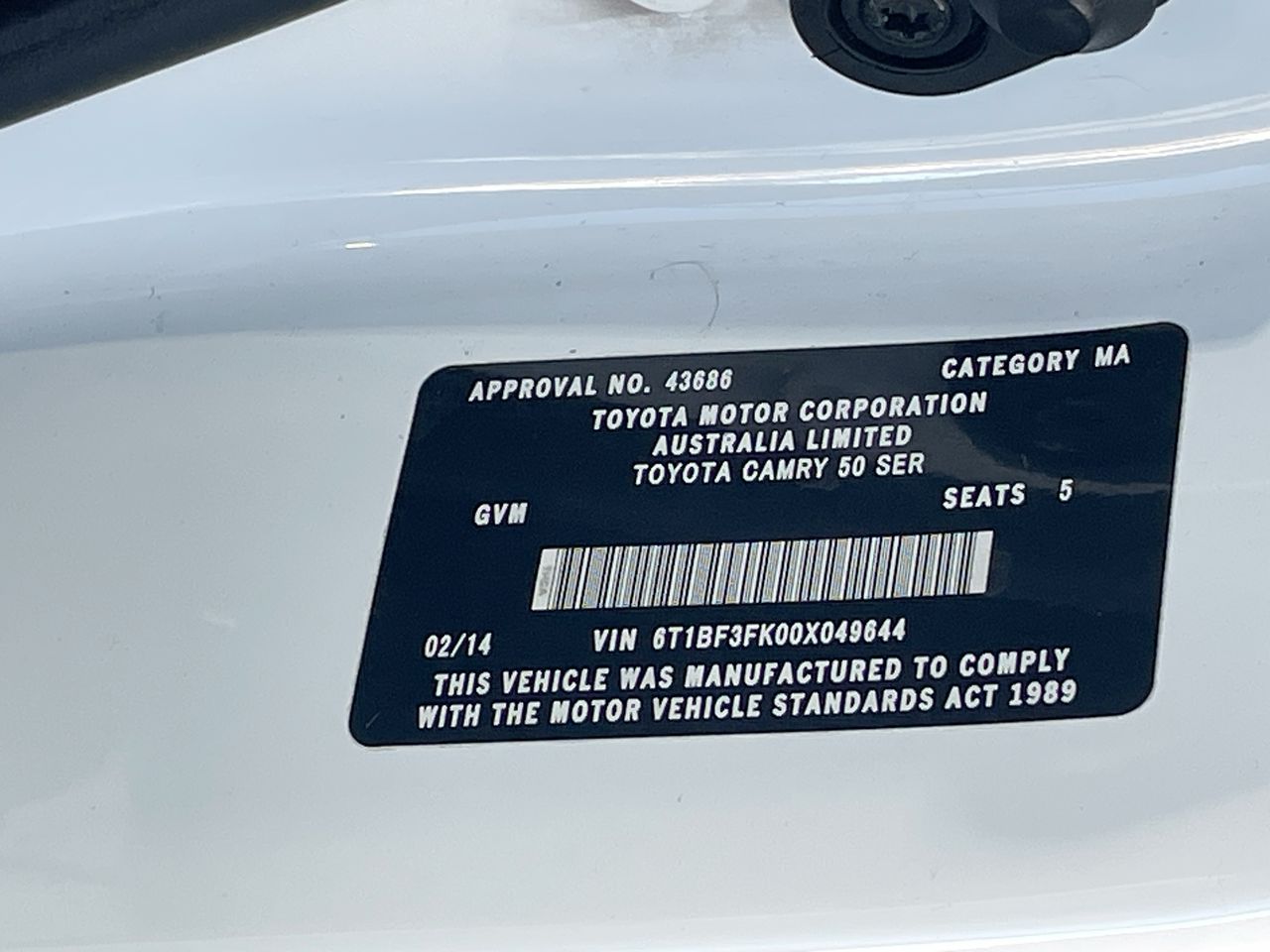 (SN:6T1BF3FK00X049644) (136680-1)