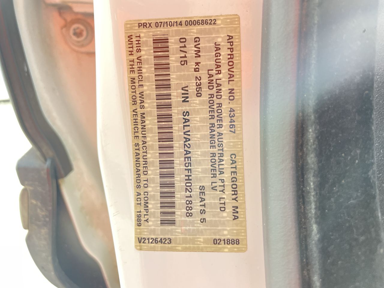(SN:SALVA2AE5FH021888) (132187-1562)