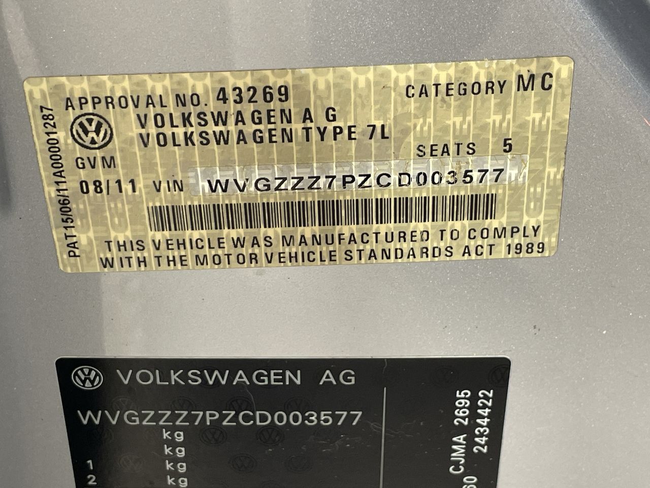 (SN:WVGZZZ7PZCD003577) (131048-240)