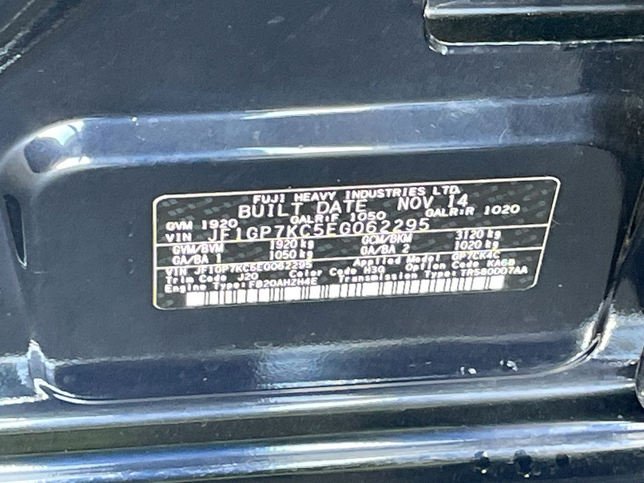 • VIN: JF1GP7KC5EG062295