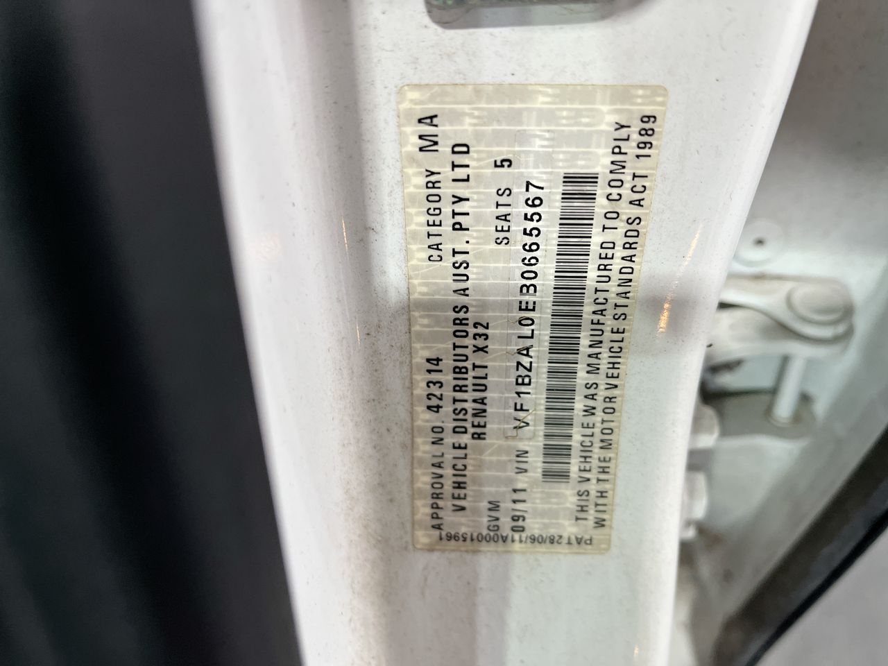 (SN:VF1BZAL0EB0665567) (131065-7)
