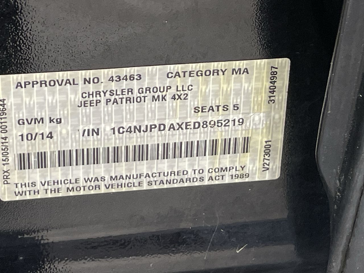 | Part of Sale | 2014 Jeep Patriot Sport MK Manual Wagon | ||||||||||||||