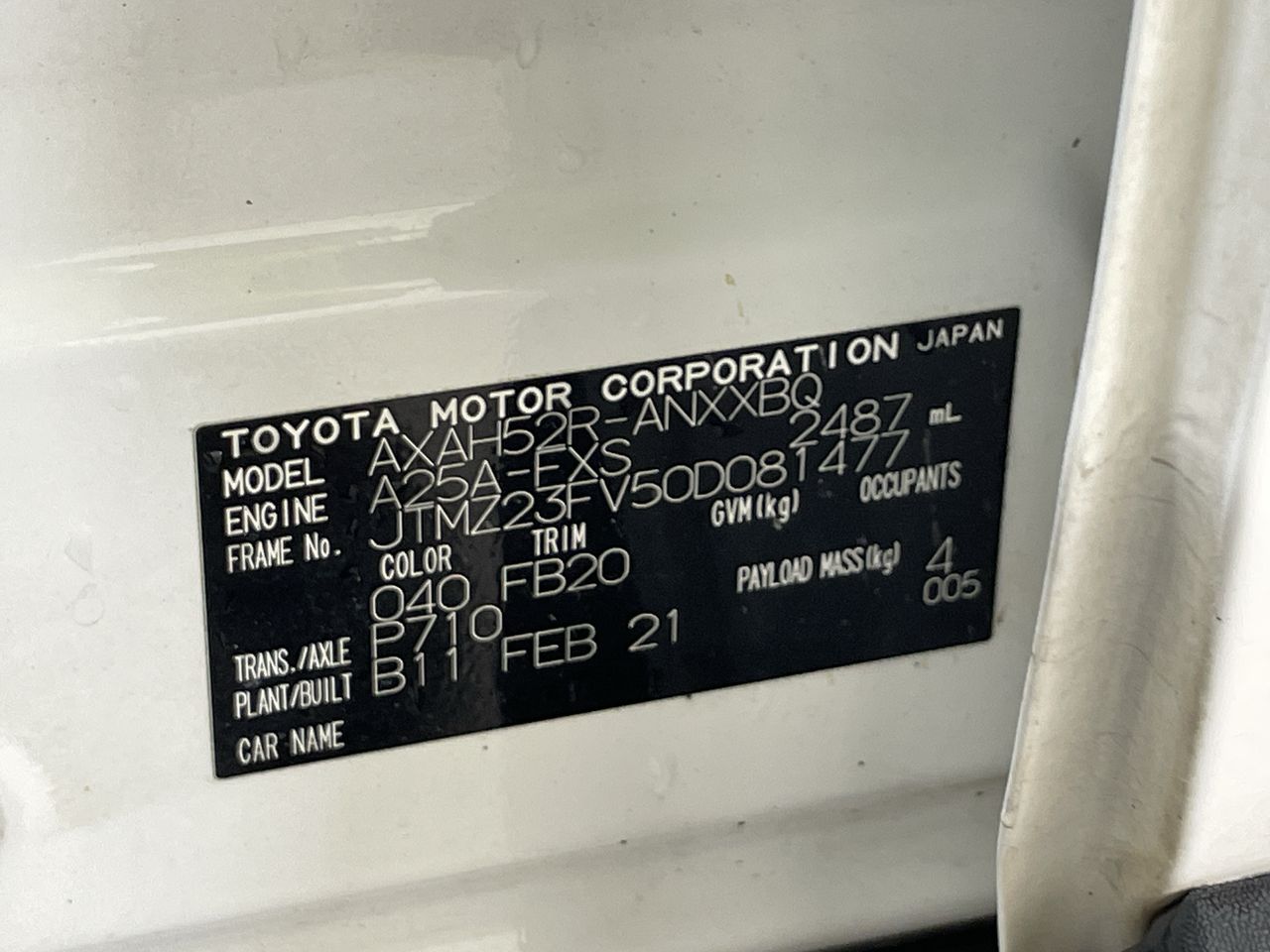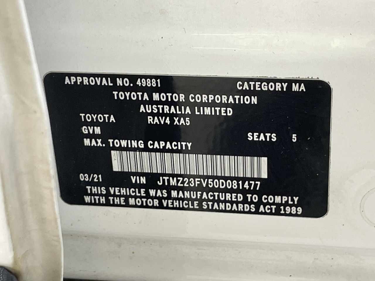 (SN:JTMZ23FV50D081477) (126557-798)