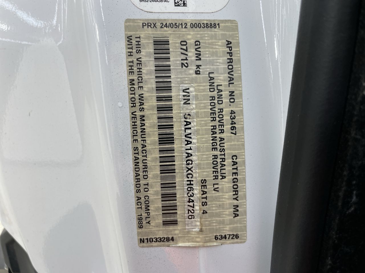 • VIN: SALVA1AGXCH634726