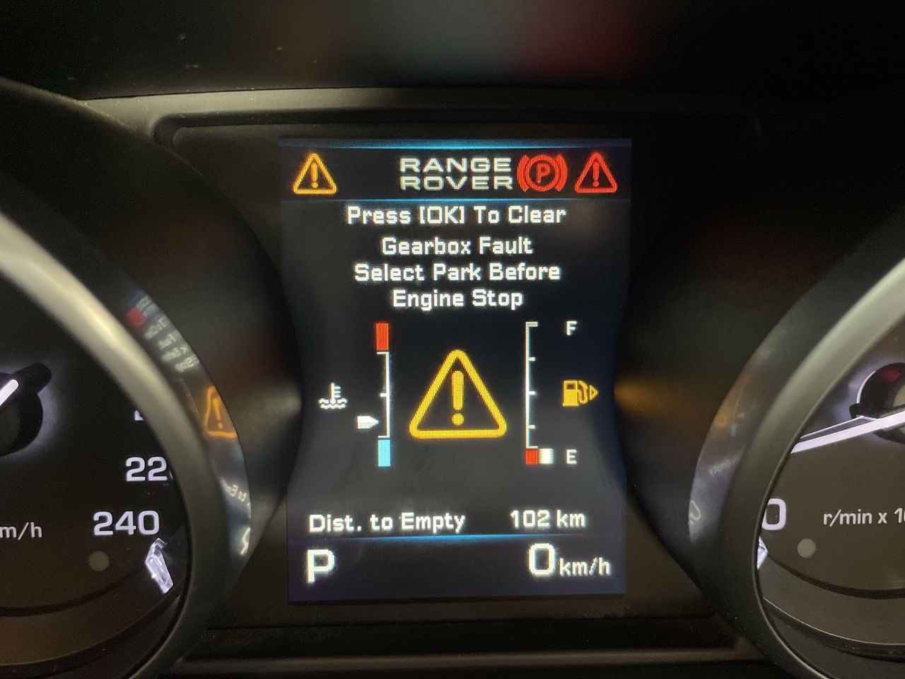 • Gearbox fault warning message on