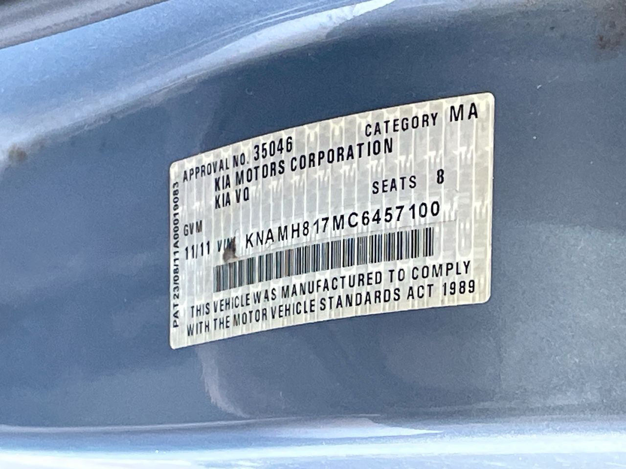 • VIN: KNAMH817MC6457100