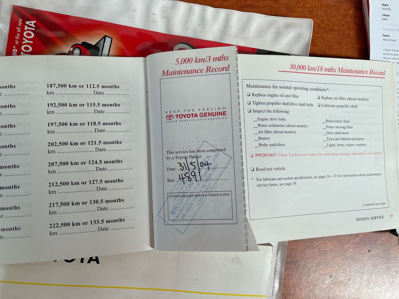• Dents or marks on body consistent with age and kilometres.