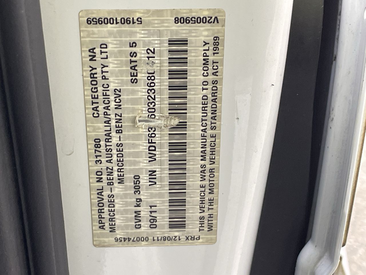 • VIN: WDF63960323680412