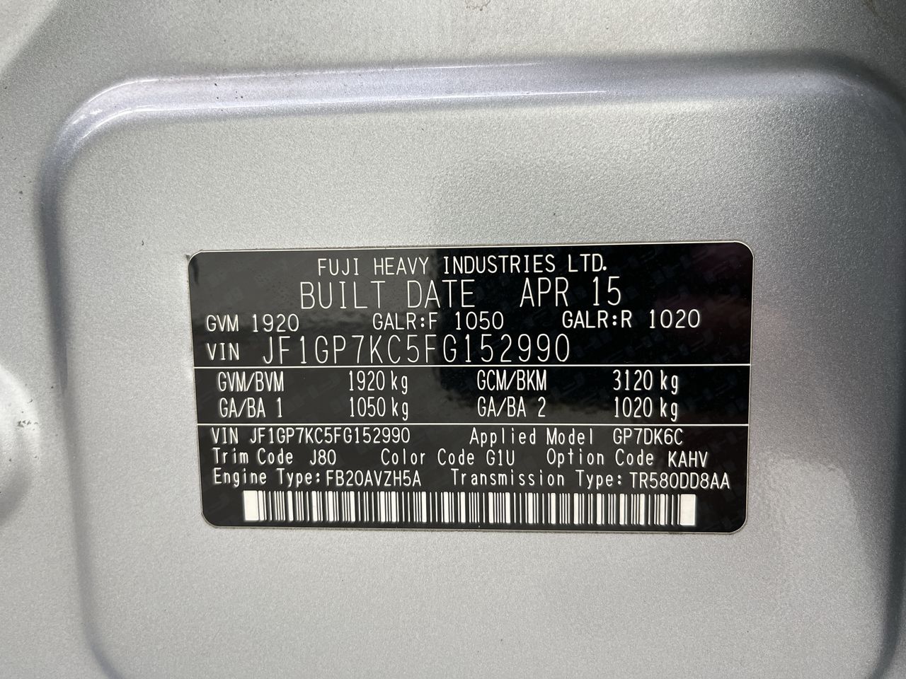 • VIN: JF1GP7KC5FG152990