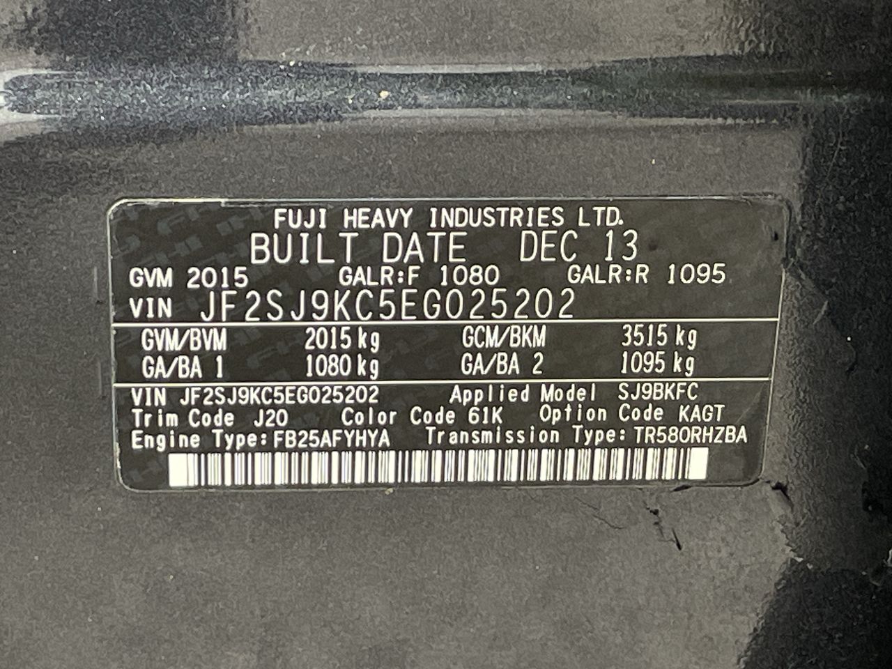 (SN:JF2SJ9KC5EG025202) (135787-308)