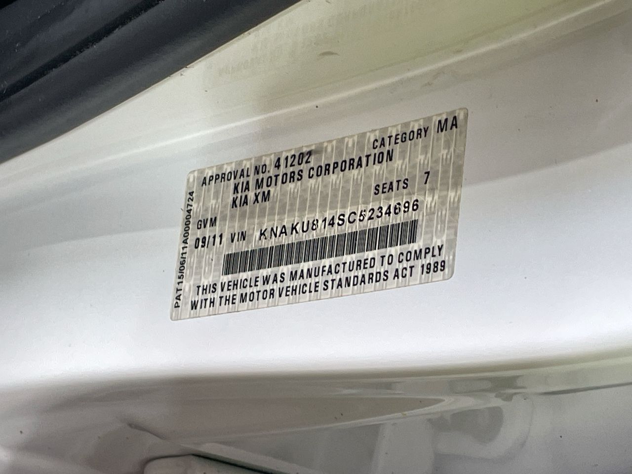 • VIN: KNAKU814SC5234696