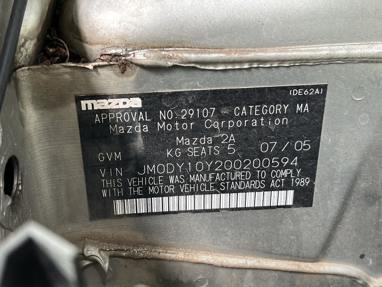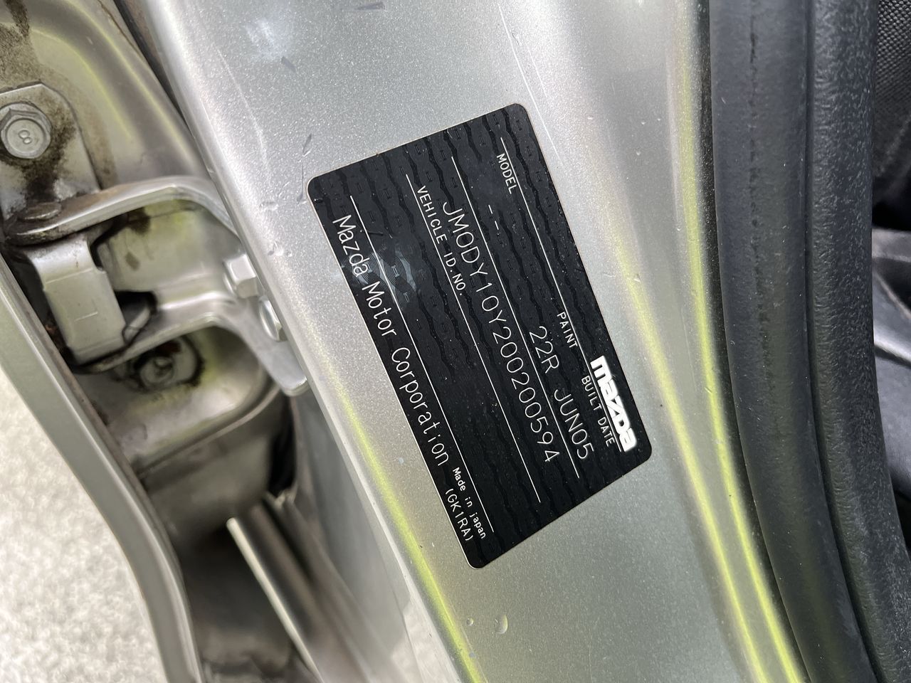 • VIN: JM0DY10Y200200594