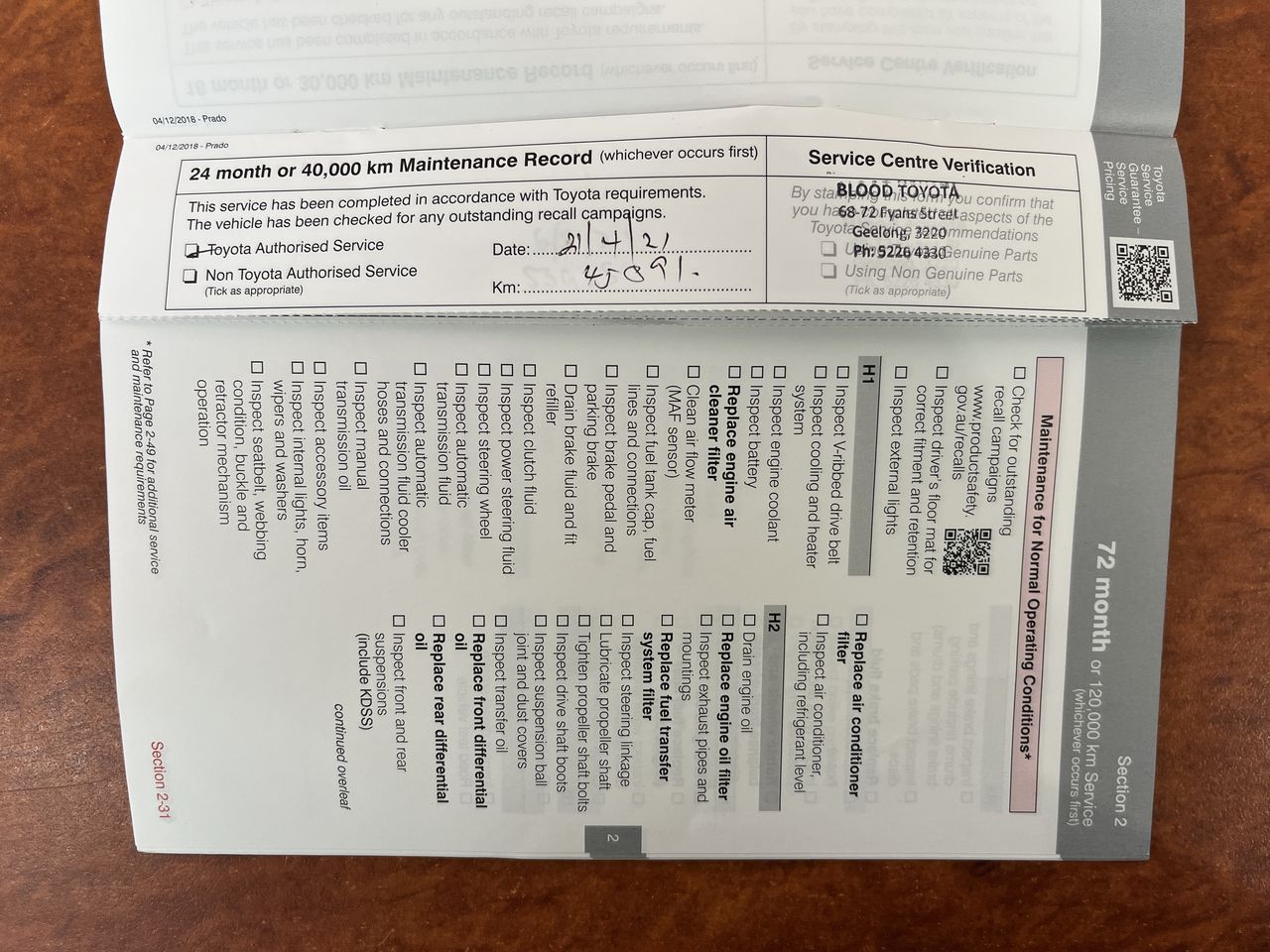 • Service History: Yes