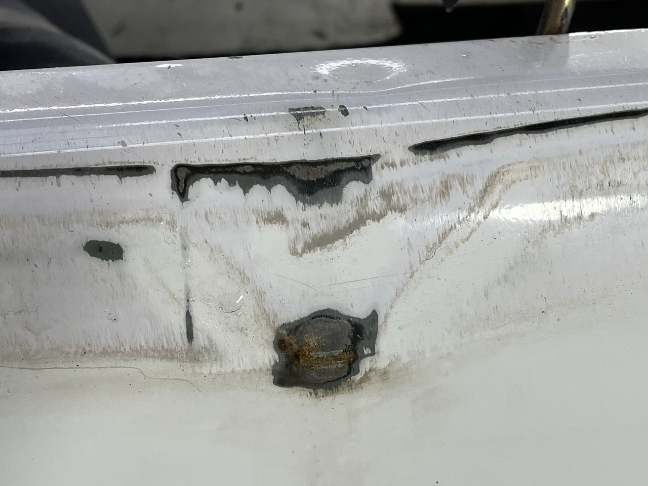 • Interior: Hood lining stained
