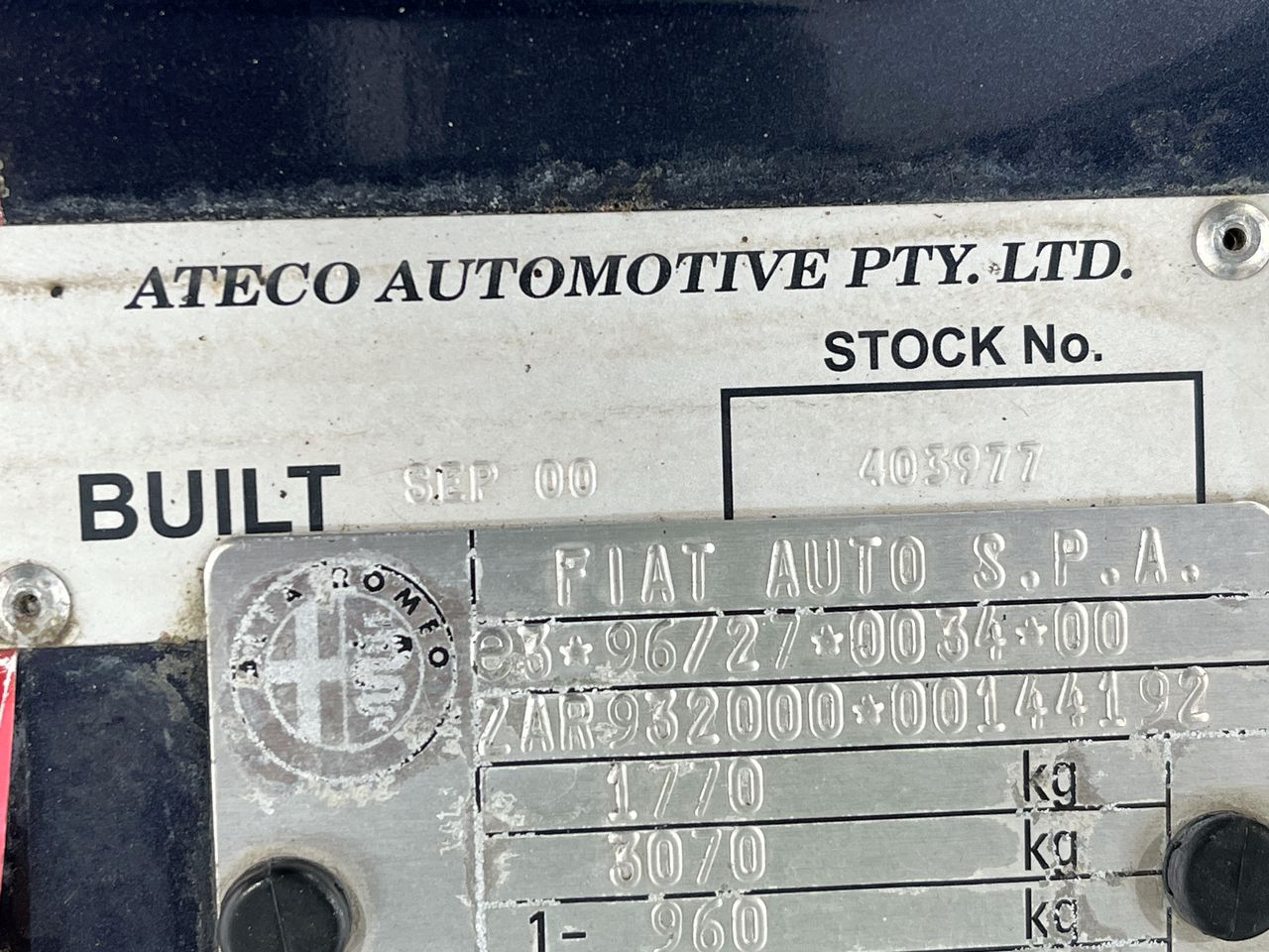 | Part of Sale | 2000 Alfa Romeo 156 2.0 Twin Spark Manual Sedan | ||||||||||||||
