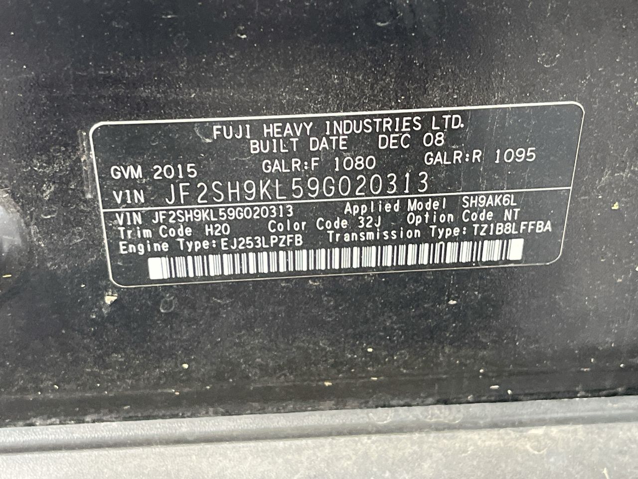 • VIN: JF2SH9KL59G020313