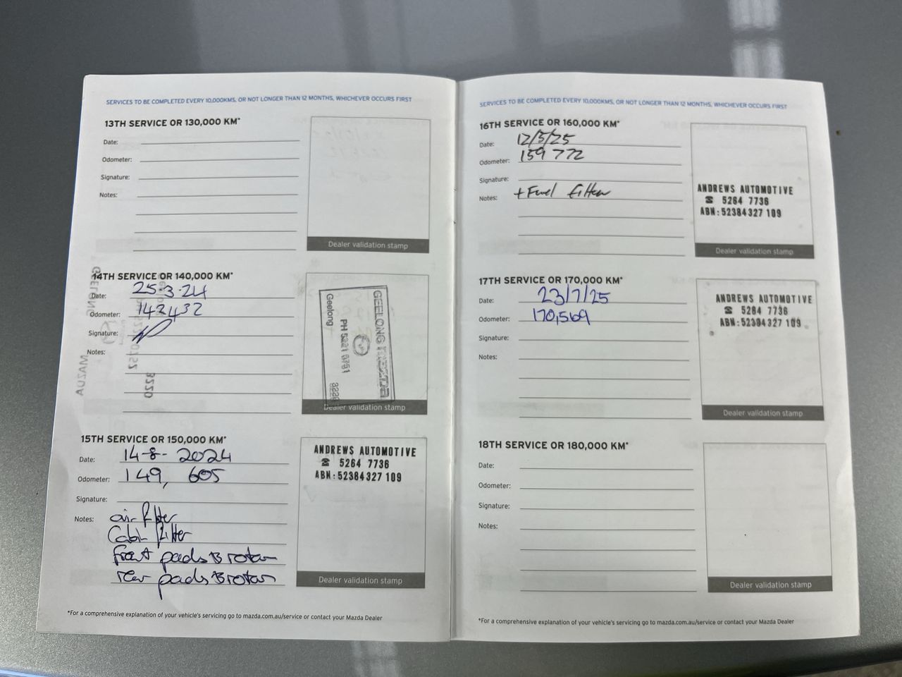 • Dents or marks, wear and tear consistent with age and kilometres.