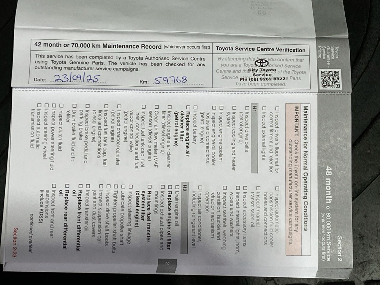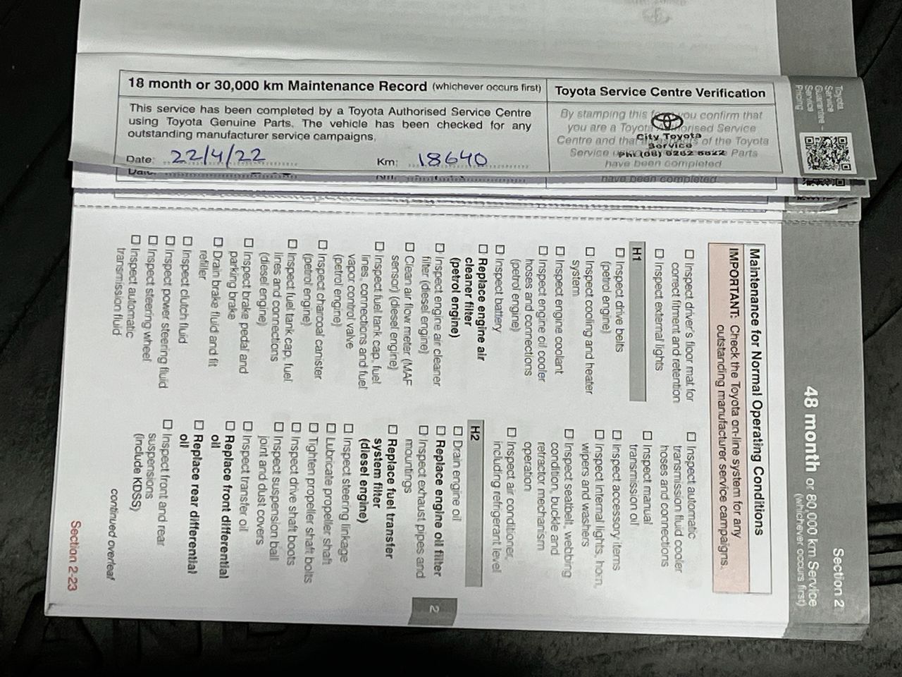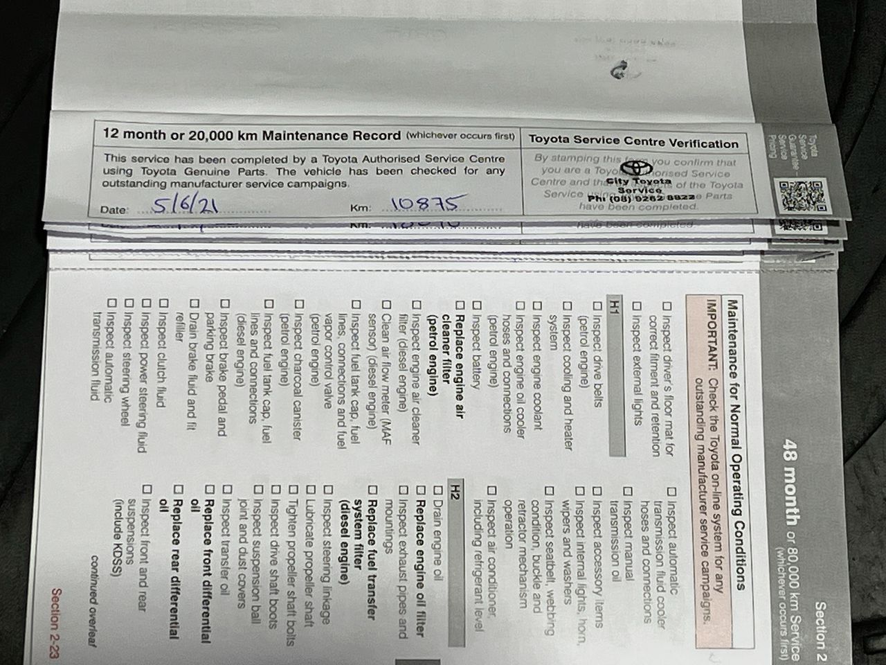 • Dents or marks on body consistent with age and kilometres.