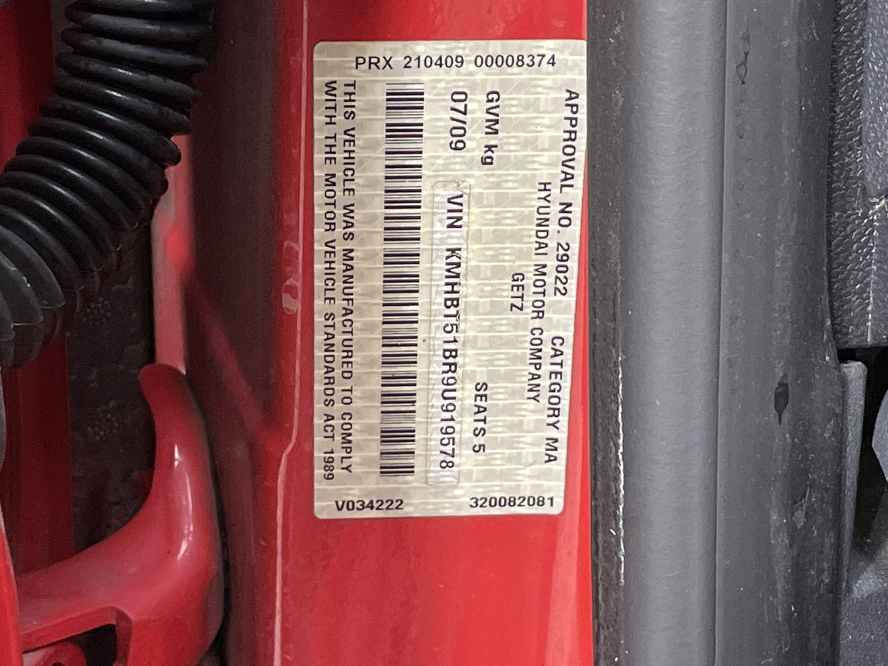 • VIN: KMHBT51BR9U919578
