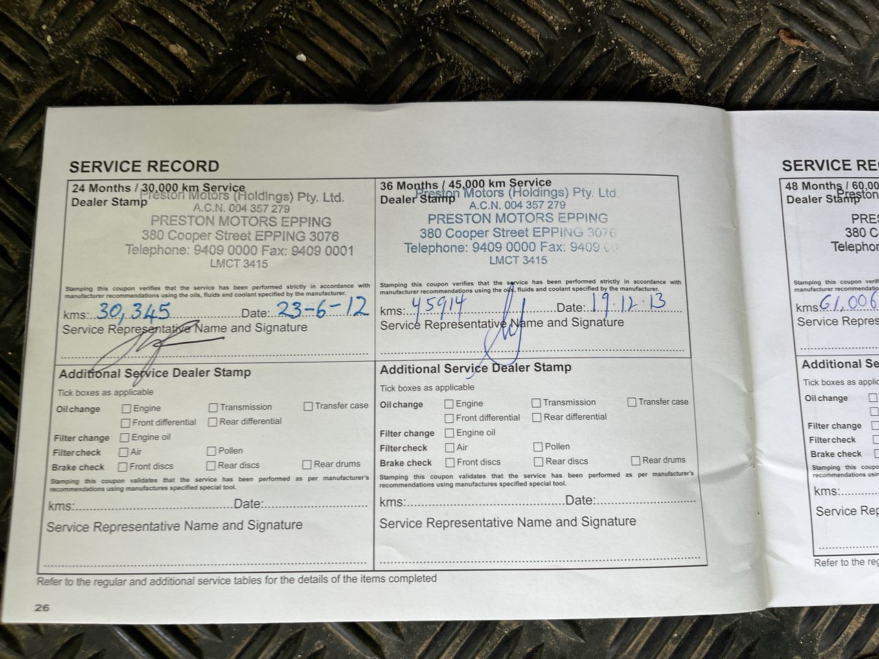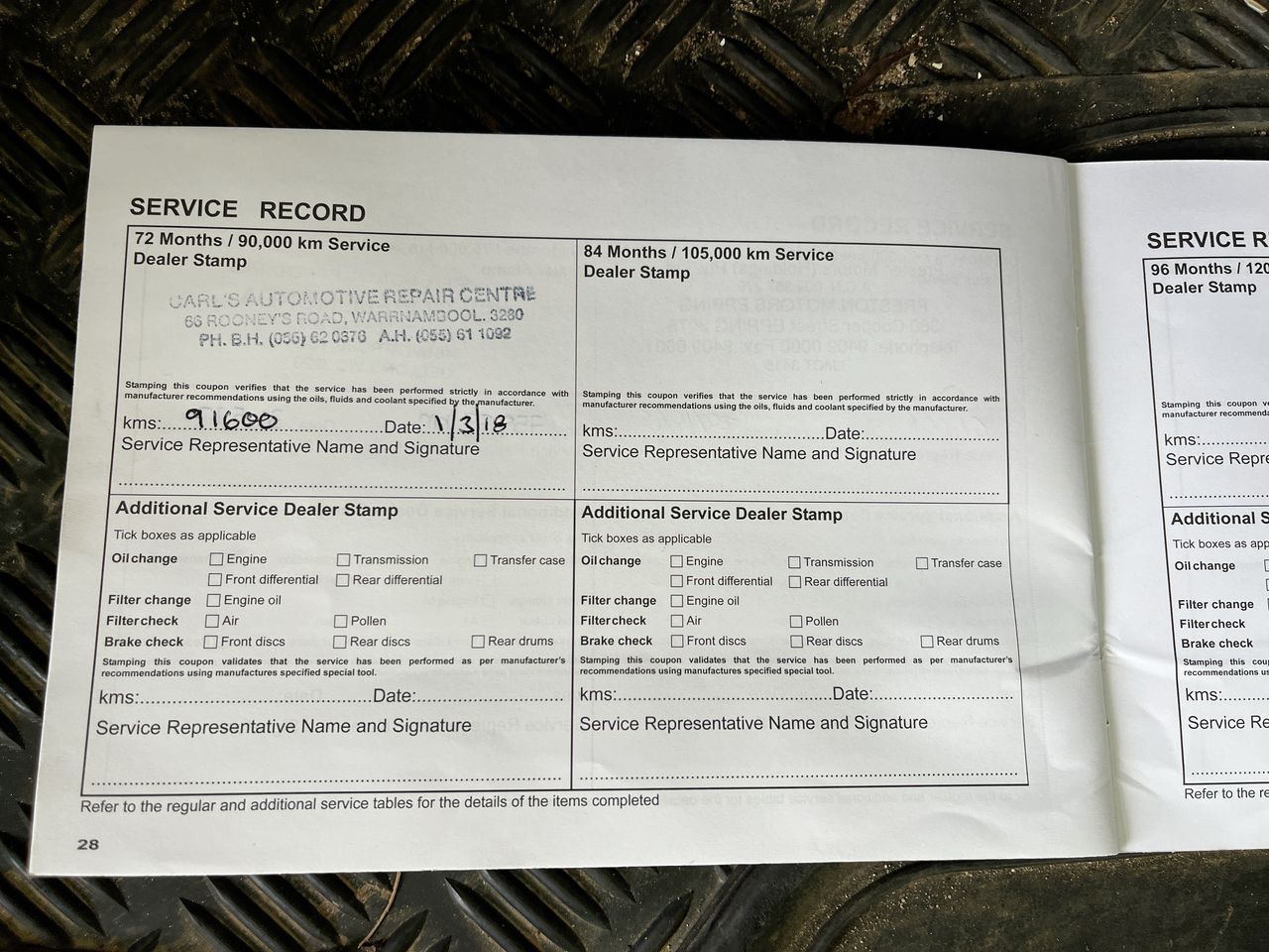 • Dents or marks on body consistent with age and kilometres.