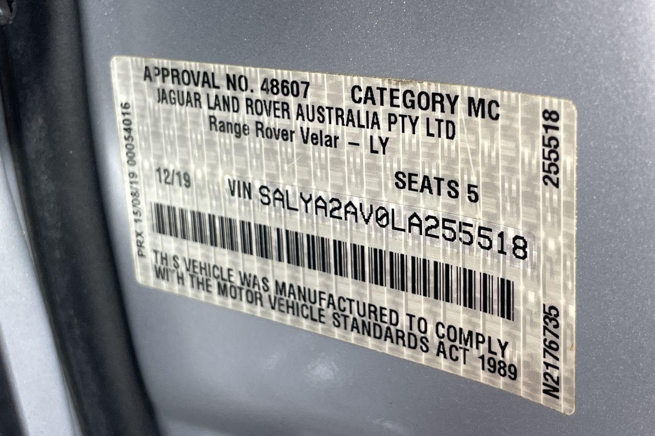 2019 Land Rover RANGE ROVER VELAR P380 R-DYNAMIC HSE L560 Auto - 8 Speed